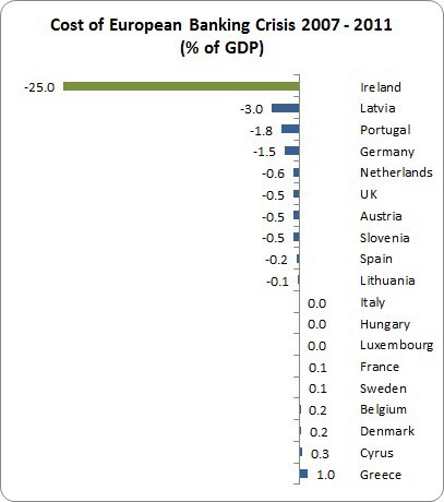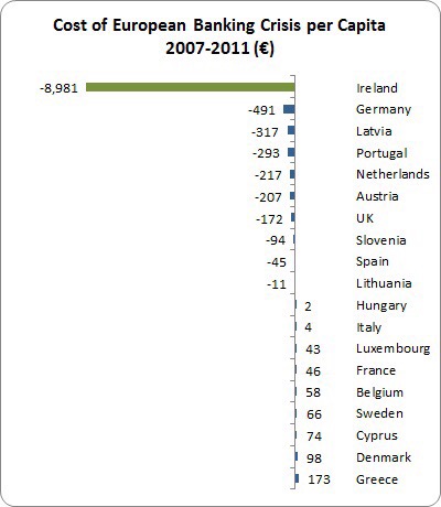 The European banking crisis to date has cost every individual in Ireland nearly €9,000 each. The average throughout the EU is €192 per capita.    What can one say after that?